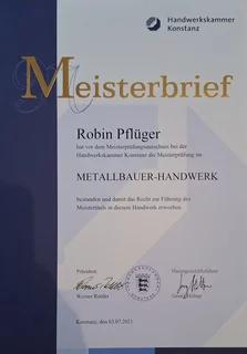 - Weiterbildung zum Metallbaumeister bei der Handwerkskammer Konstanz - 2020 bis 2021