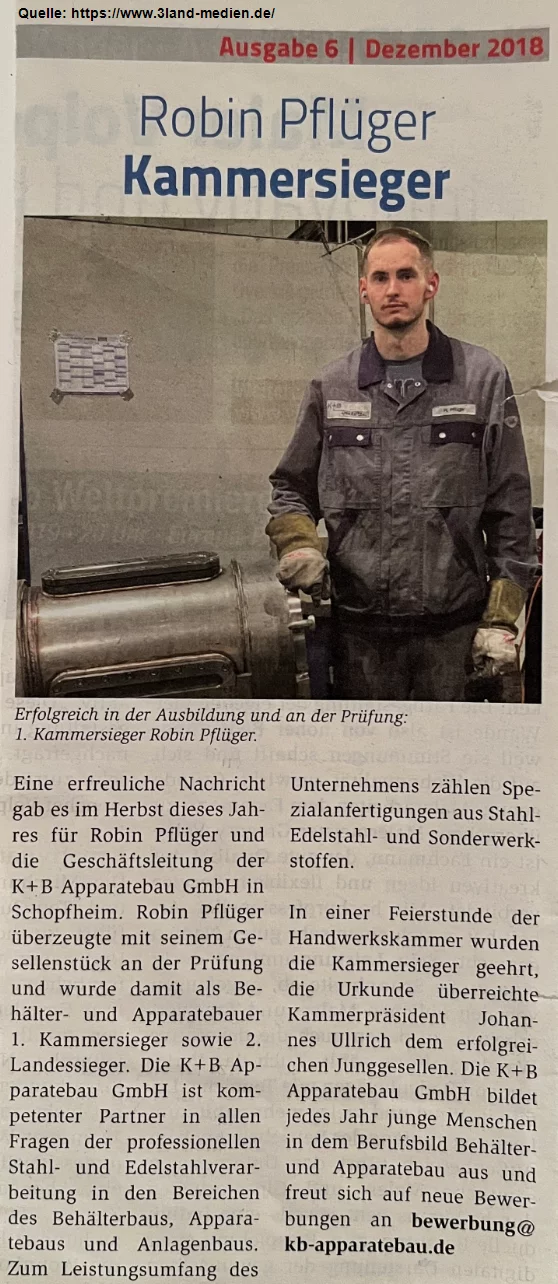 - Ausbildung zum Behälter- und Apparatebauer - 2015 bis 2018
